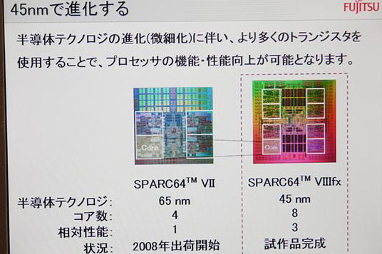 這種新型CPU今後非常有可能用在預計於2 010年運行的日本理 化學研究所的下一代超 級計算機上。據估計, 在超級計算機的心臟部 位將搭載數萬個這種新 型CPU,從而在新藥 開發、預報地震、機器 人引擎設計等各個方面 發揮威力。此外,如果 這種CPU的使用範圍 拓展到個人 ,也將有利於人們開發 出諸如可攜帶型同聲傳 譯系統和汽車自動駕駛 系統之類的各種新型裝 置。